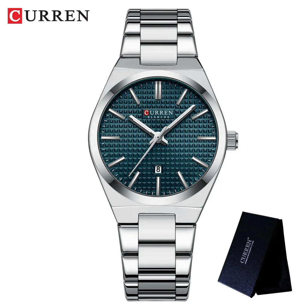 The CURREN Fashion Women’s Stainless Steel Quartz Watch combines timeless elegance with modern functionality. Featuring a sleek, numberless dial and a luxurious stainless steel bracelet, this watch is perfect for any occasion, from casual outings to formal events. A thoughtful gift for family, friends, or yourself, it’s a stylish accessory that complements every wardrobe.