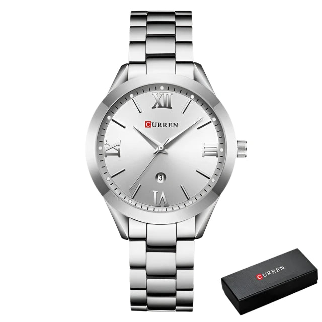 The CURREN Retro Ladies Quartz Watch offers a perfect balance of vintage charm and modern functionality, making it an excellent accessory for any occasion. Featuring a stainless steel band, a sleek round dial, and complete calendar functionality, this watch is ideal for women who appreciate timeless elegance and practicality.