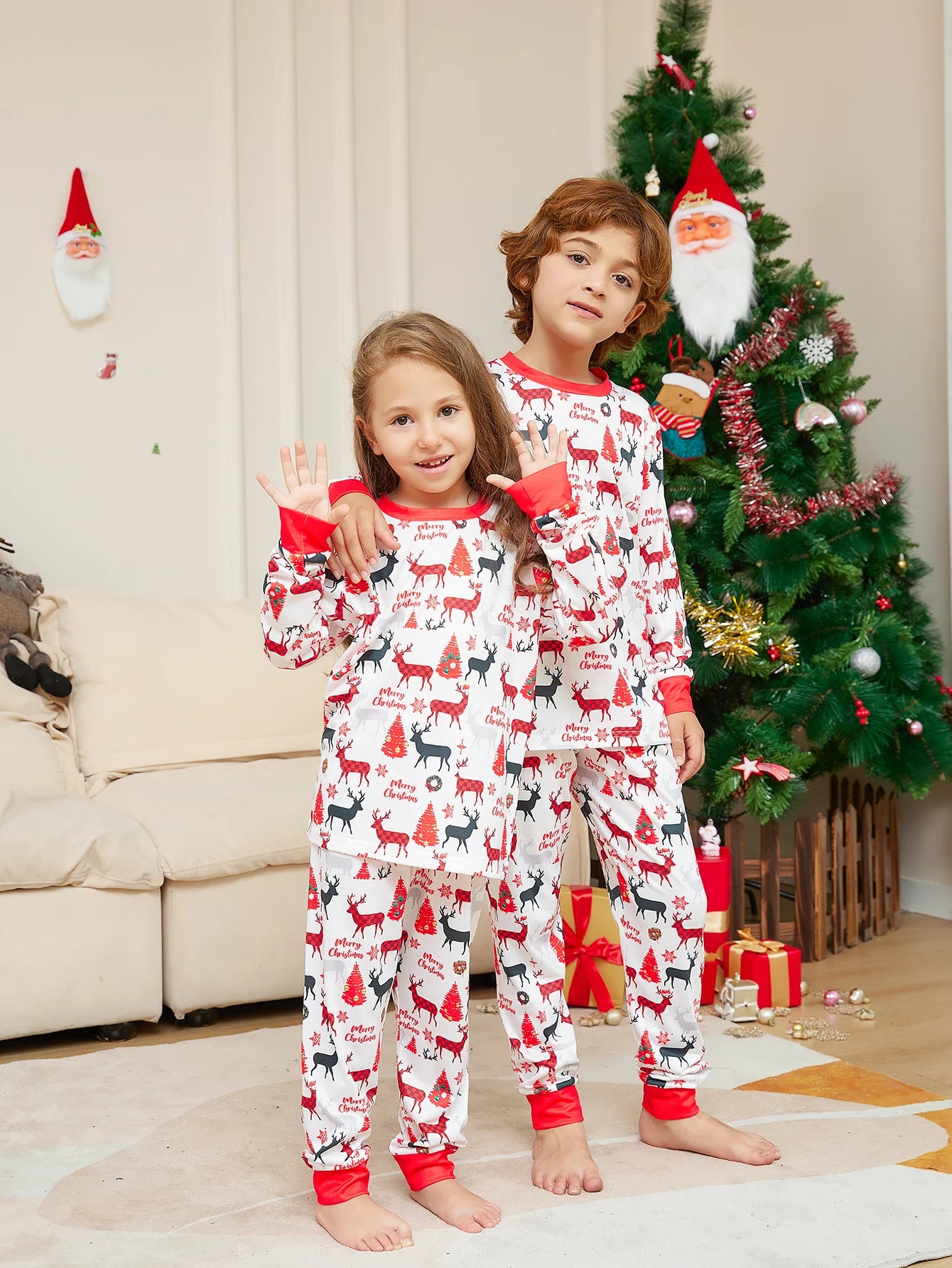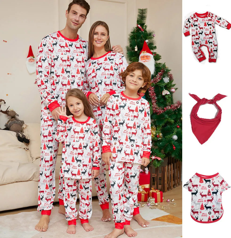 - Matching family set, Red deer print, Cosy polyester material, Pullover style, Full-length sleeves