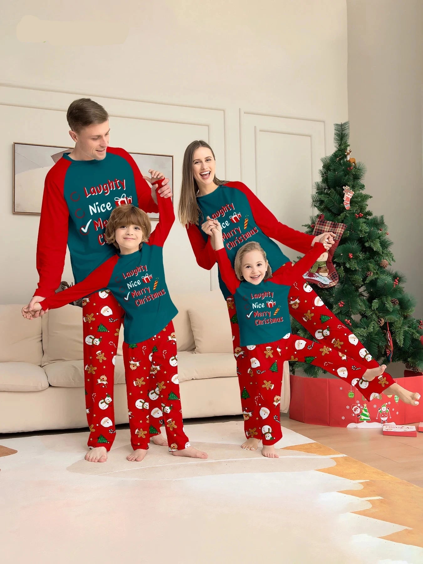 Festive Family Elk Pyjamas - Red & Green Plaid