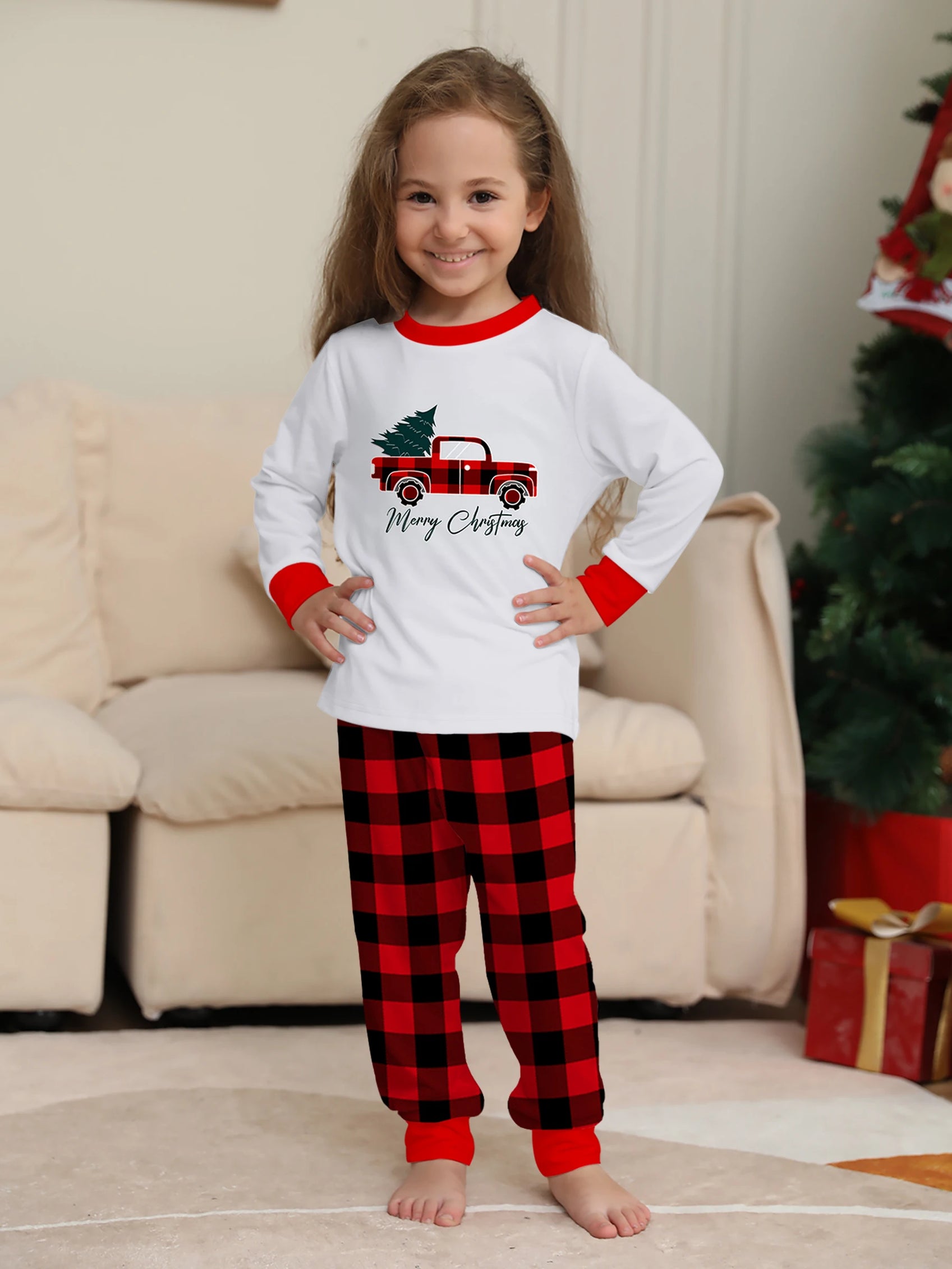 Festive Family Pyjama Set - Red & Green Plaid with Elk Design