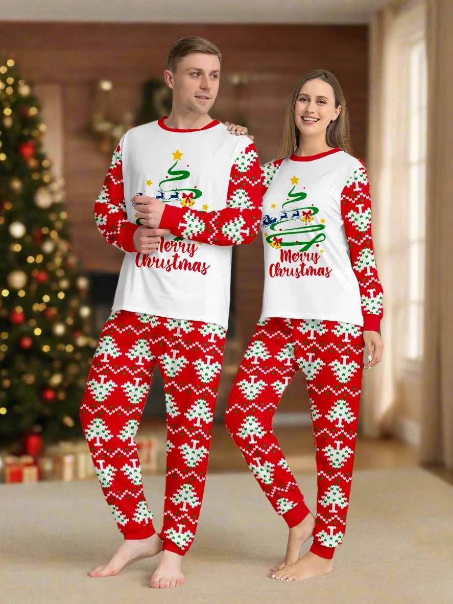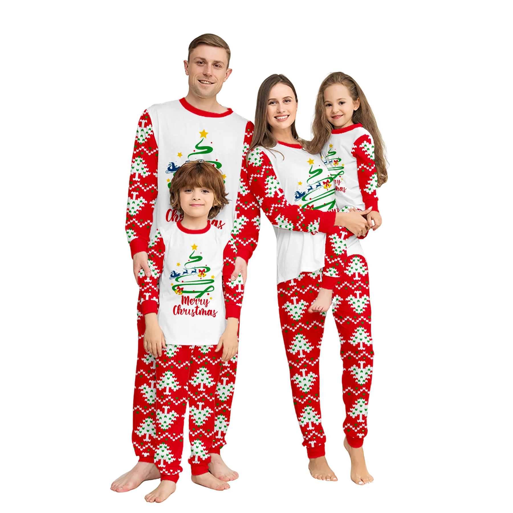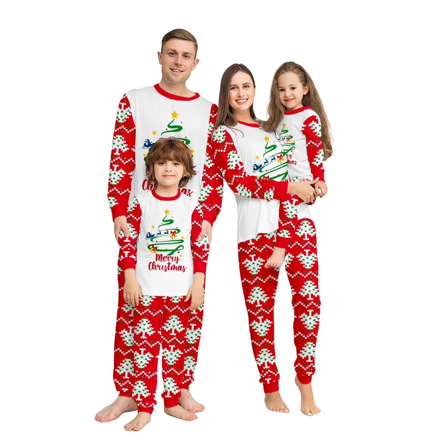 Festive Family Pyjama Set with Reindeer & Xmas Tree Print