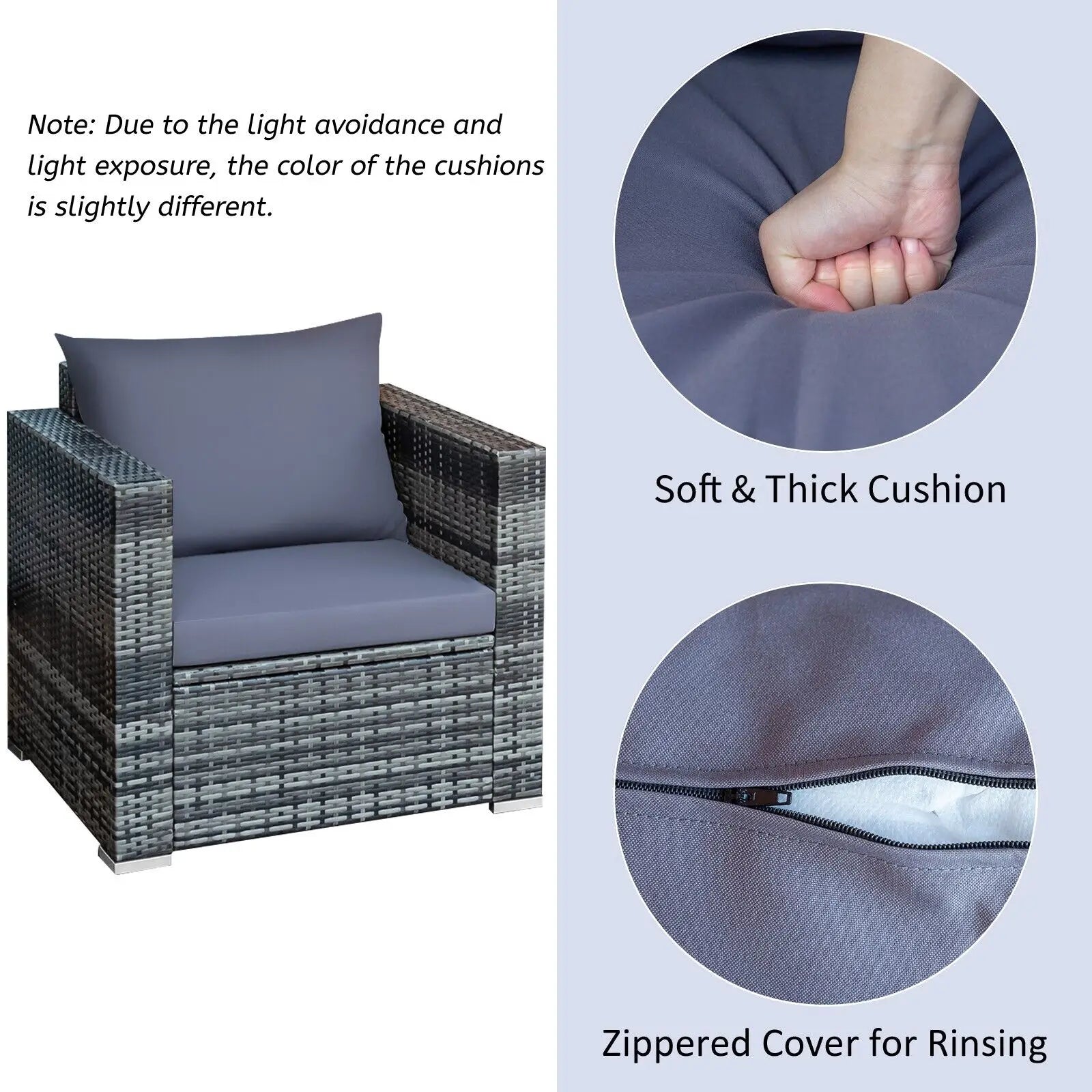 Care Tip: Store cushions in a dry place when not in use and wipe down wicker regularly to maintain its pristine condition.