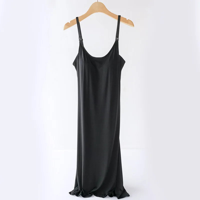 Featuring a V-neck design with discreet nursing access, this backless sleep dress is perfect for easy breastfeeding while ensuring a lightweight and airy feel. Suitable for sleep, lounging, and home wear, this versatile piece is an essential addition to any maternity wardrobe.