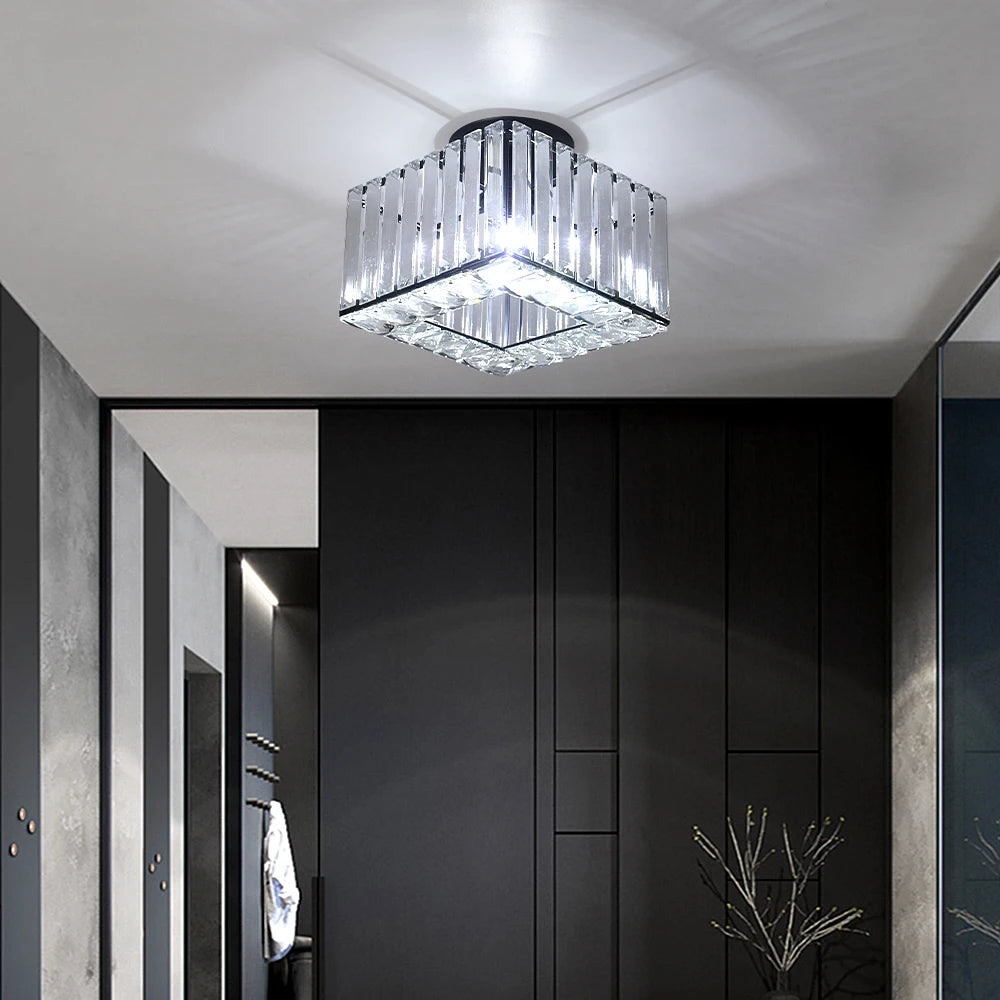 Enhance your space with this Minimalist Crystal LED Ceiling Light, a modern square chandelier designed to bring elegance and ambient lighting to bedrooms, hallways, and living areas. The sleek stainless steel frame paired with K9 crystal accents creates a luxurious yet contemporary aesthetic.
