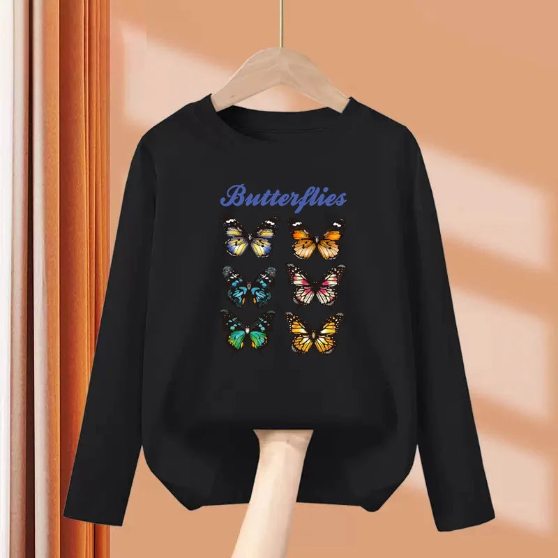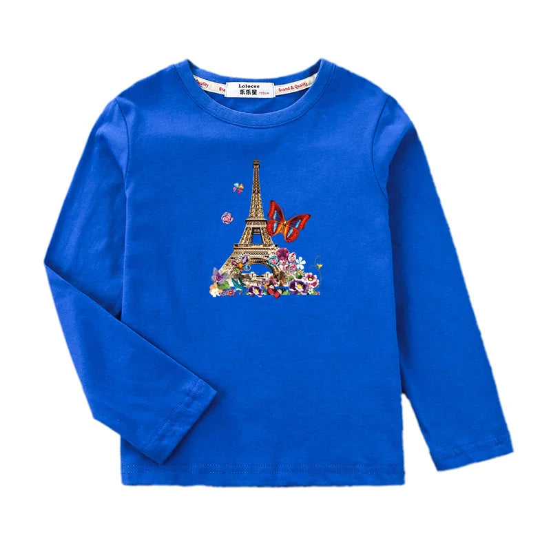 Paris Butterfly Eiffel Tower Long-Sleeve Cotton Tee for Girls