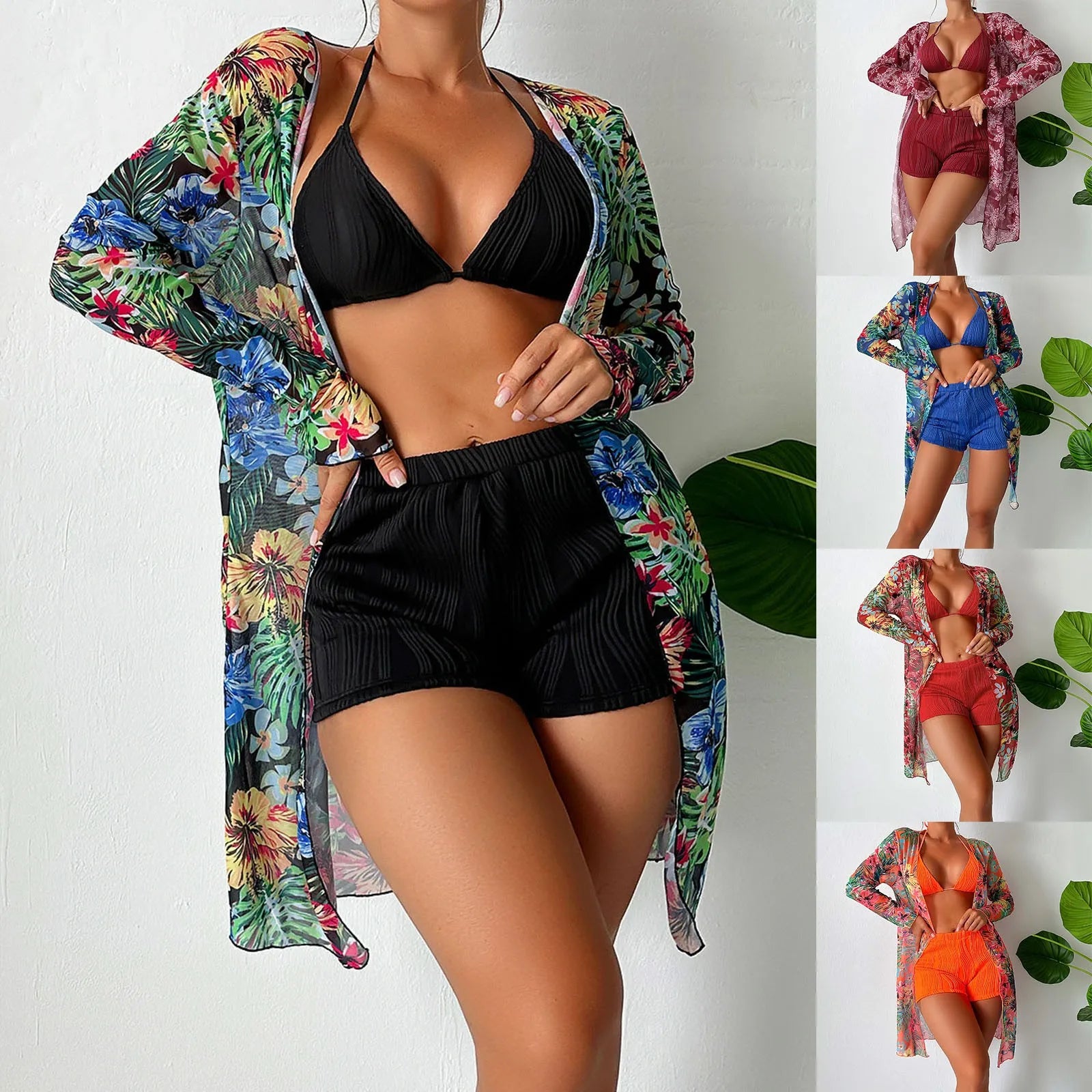 Get ready to turn heads and feel your best this summer in this stylish 3-piece bikini set!