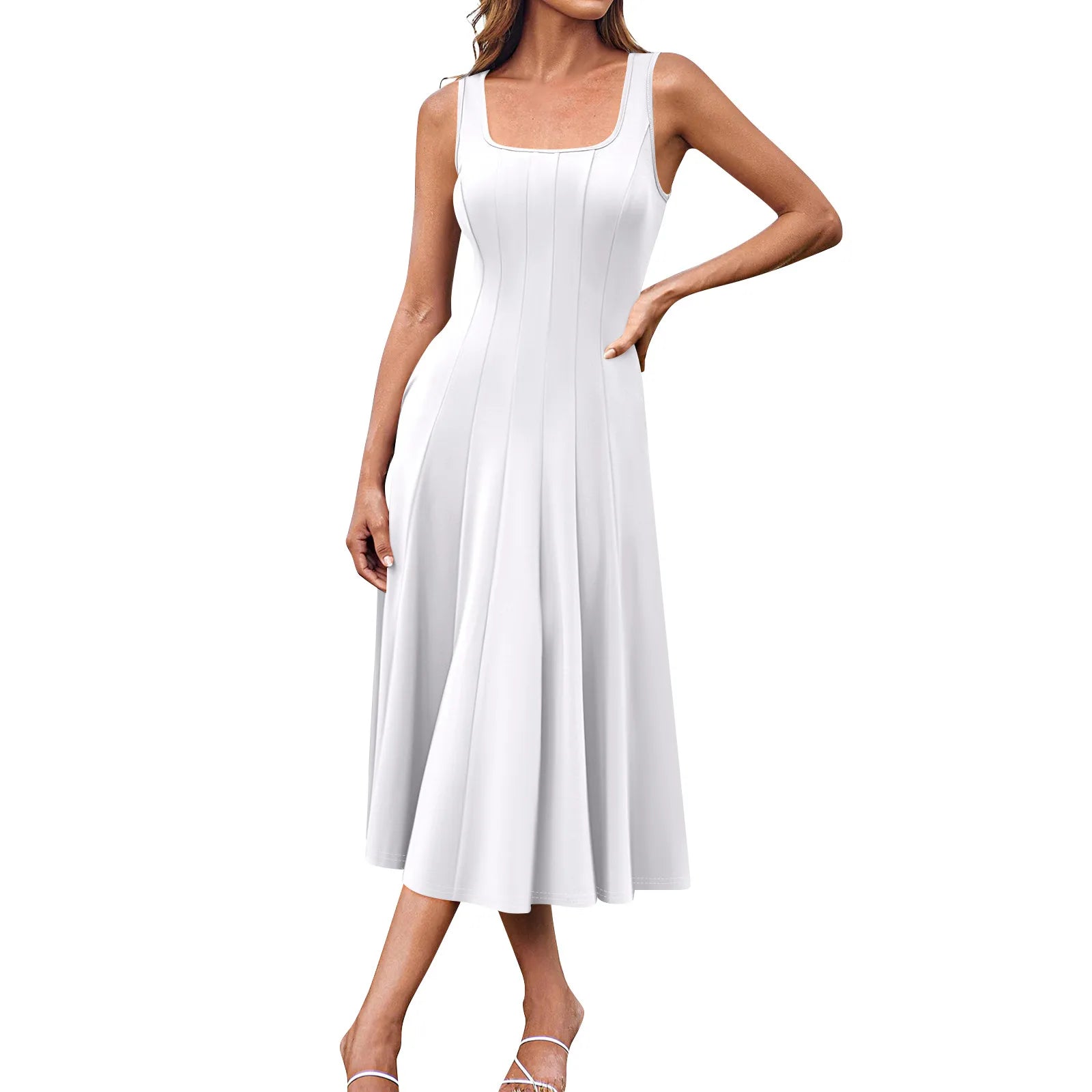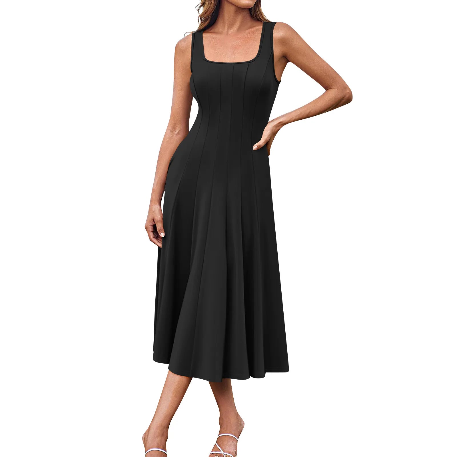 Experience effortless elegance with the Serene Summer Midi Dress, a perfect blend of style and comfort for your spring and summer wardrobe. This dress features a graceful round neck and sleeveless design, allowing you to stay cool and stylish on warm days. The solid colour and straight silhouette lend a timeless appeal, making it a versatile piece for any occasion.