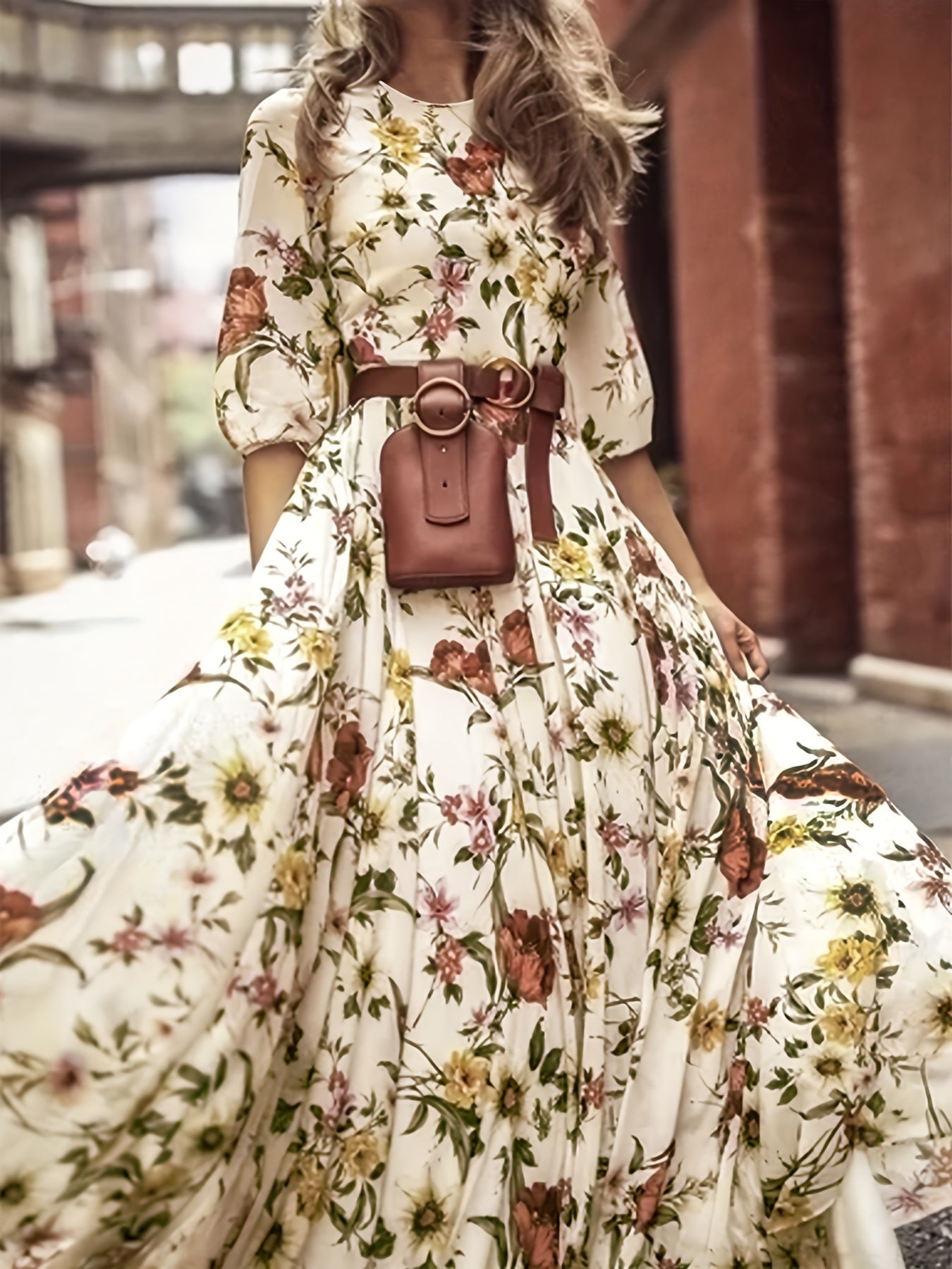 Vibrant Floral Maxi Swing Dress – Elegant & Comfortable